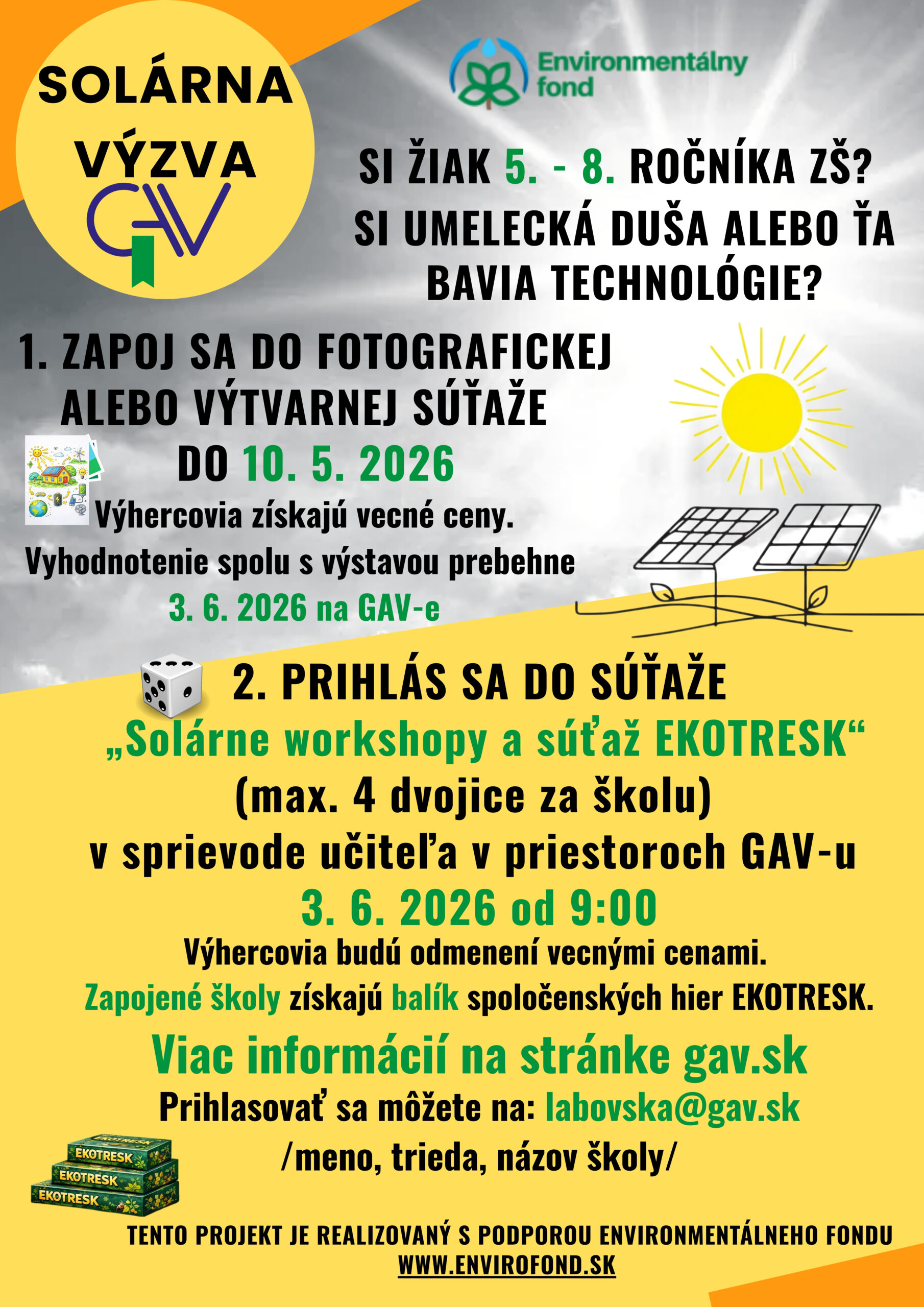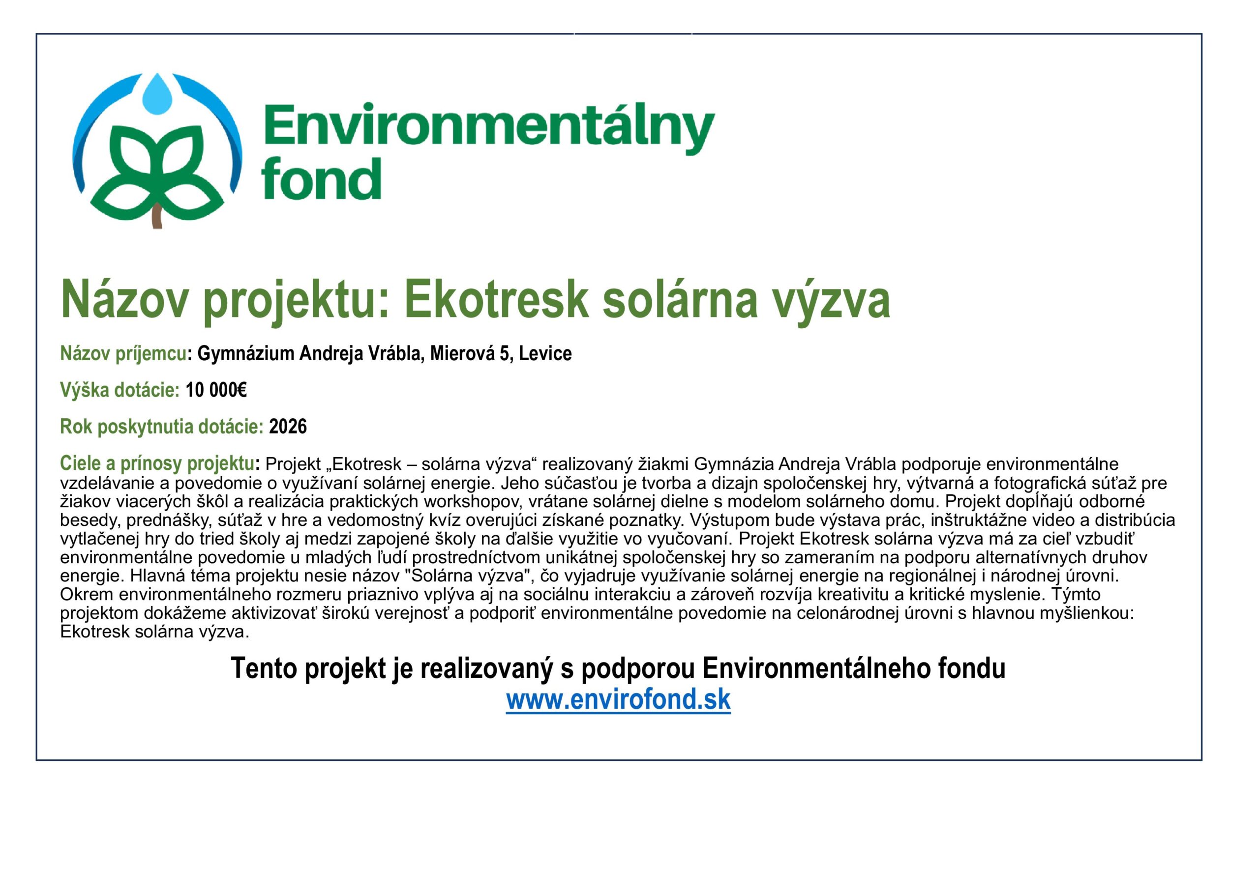 Pravidlá súťaže a informácie o projekte EKOTRESK Solárna výzva pre študentov našej školy.